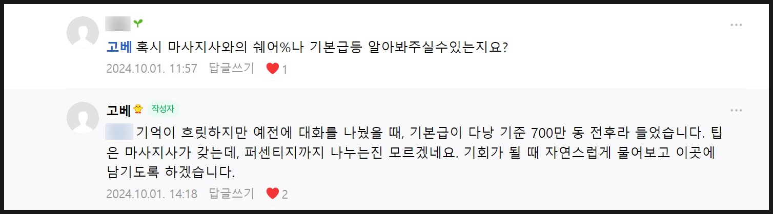 호앙 형이 말하는 마사지사 기본급!